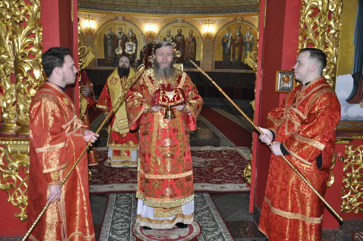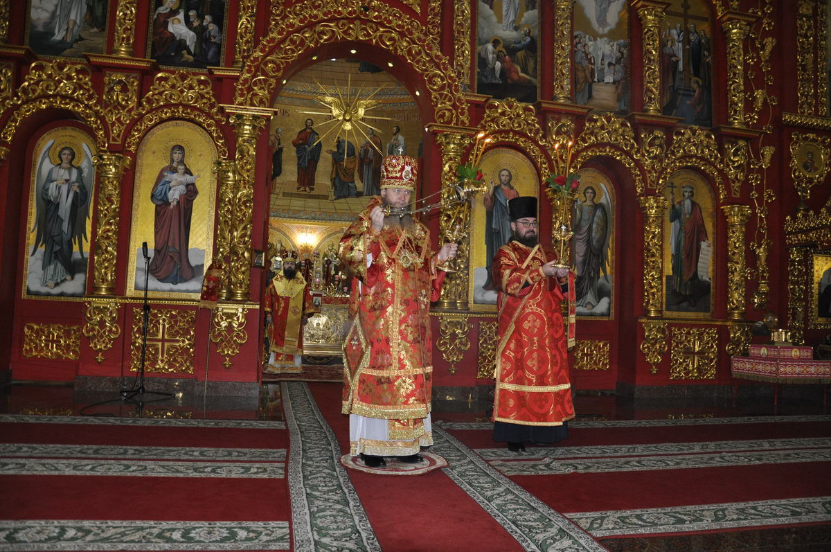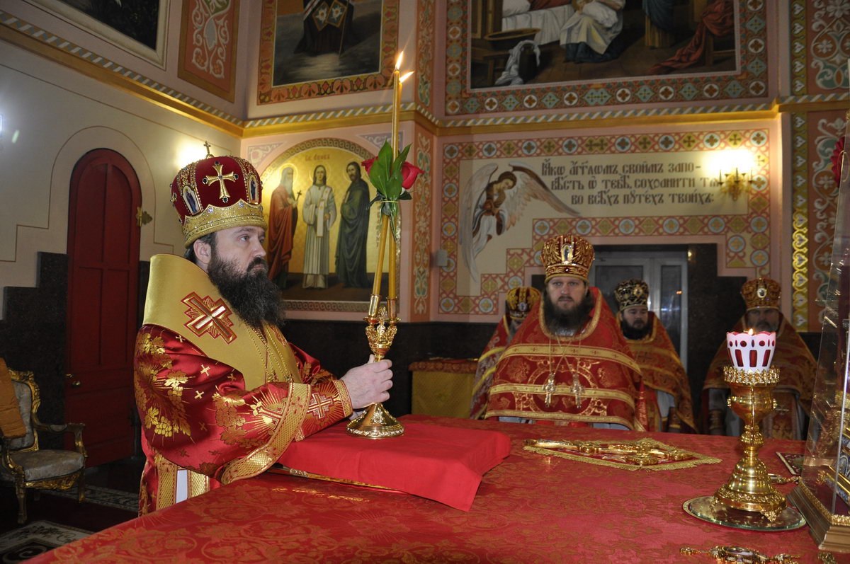После сугубой ектении владыка вознес молитву о мире и умножении любви среди народа Отечества нашего.