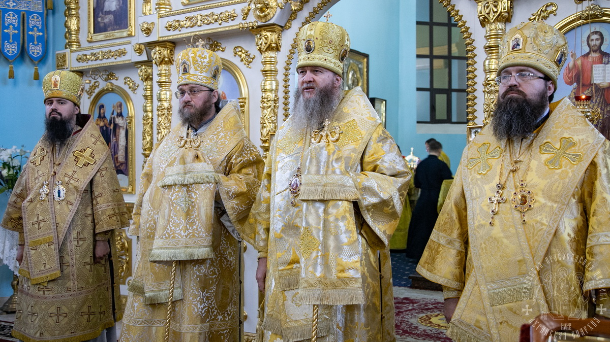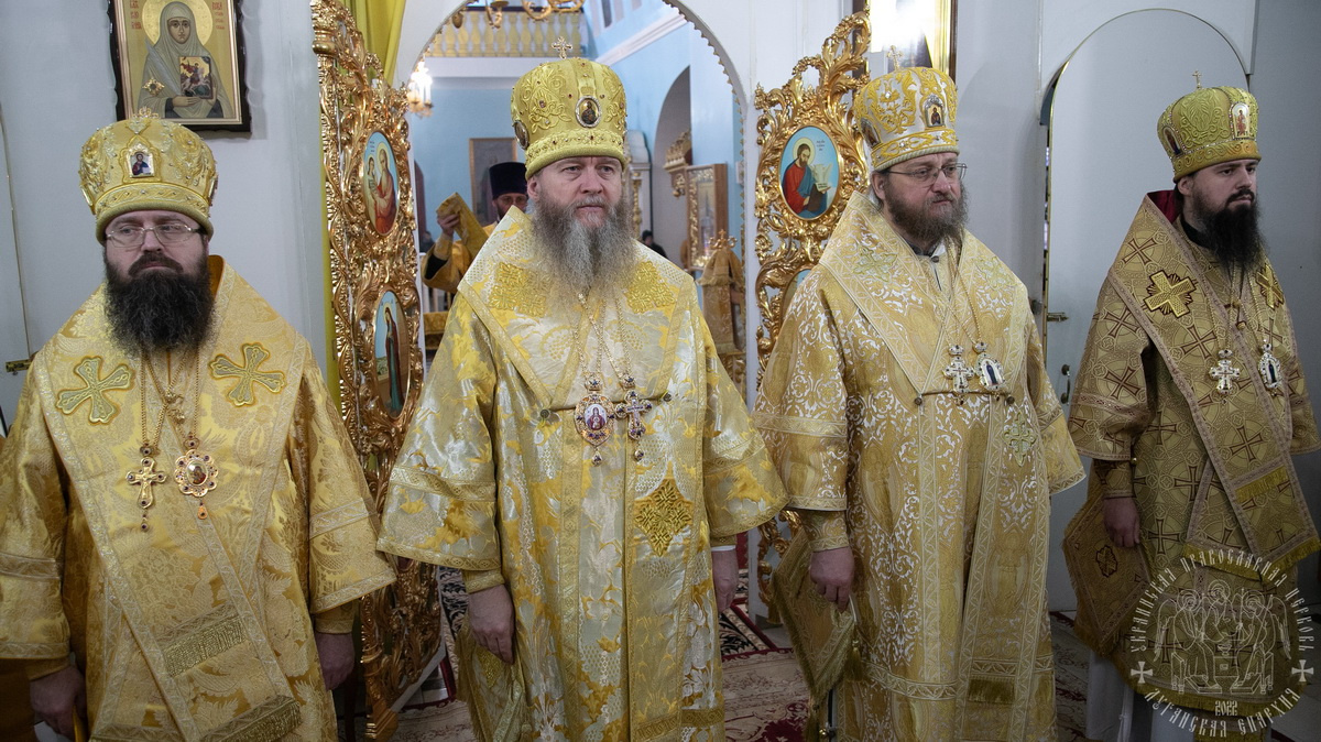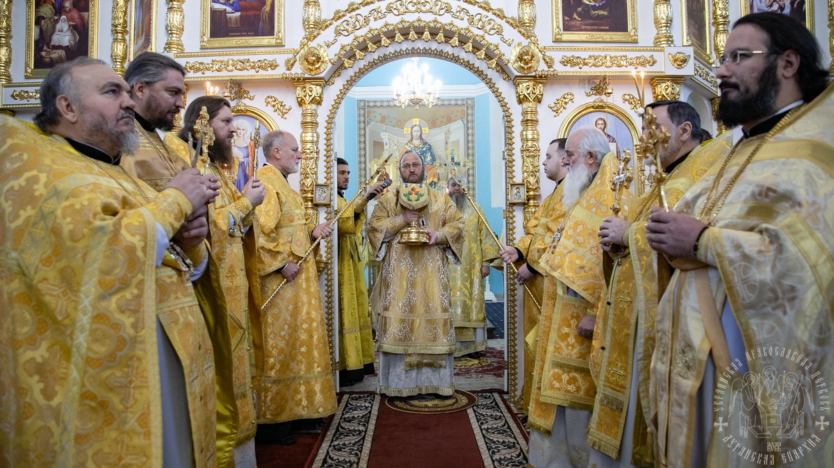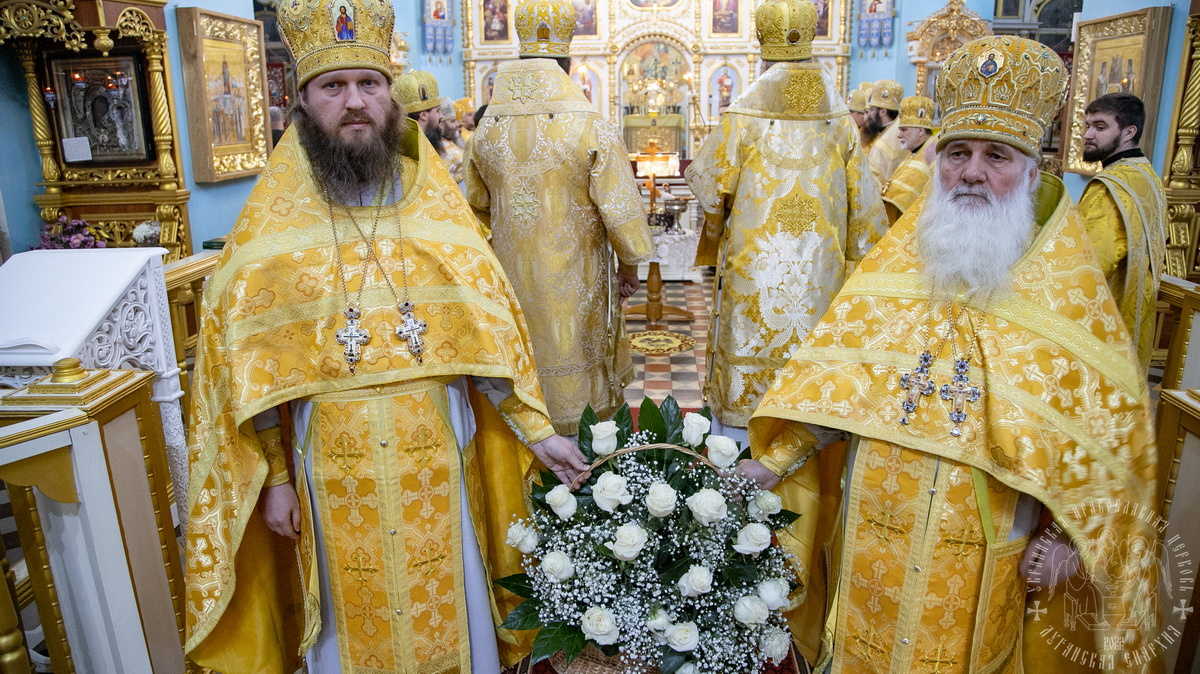 За Литургией Преосвященным архипастырям сослужил секретарь епархии прот. Андрей Зозуля, игумены монастырей, отцы благочинные Луганской епархии и гости в священном сане.