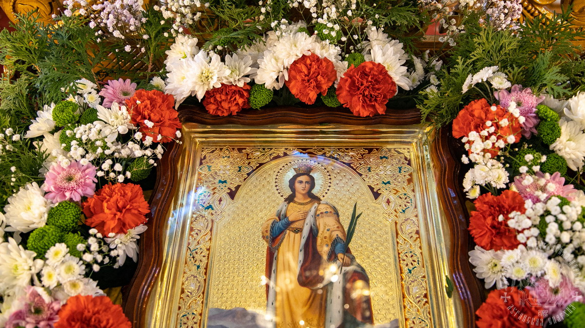По окончании Литургии, архипастырь вознес молитву великомученице Екатерине и вместе со священнослужителями совершил славление святой.