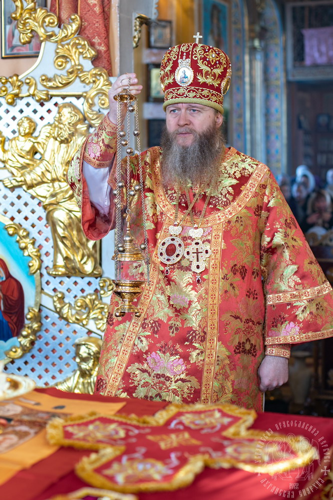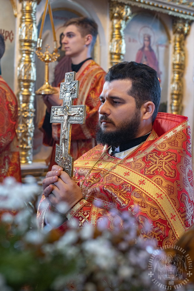 За Божественной литургией Его Высокопреосвященству сослужил секретарь епархии прот. Андрей Зозуля, благочинный Новоайдарского округа прот. Евгений Рогозинский, благочинный Станично Луганского округа прот. Алексий Храбров, настоятель храма прот. Василий Гундертайло, а также духовенство благочиния.