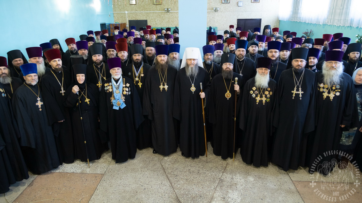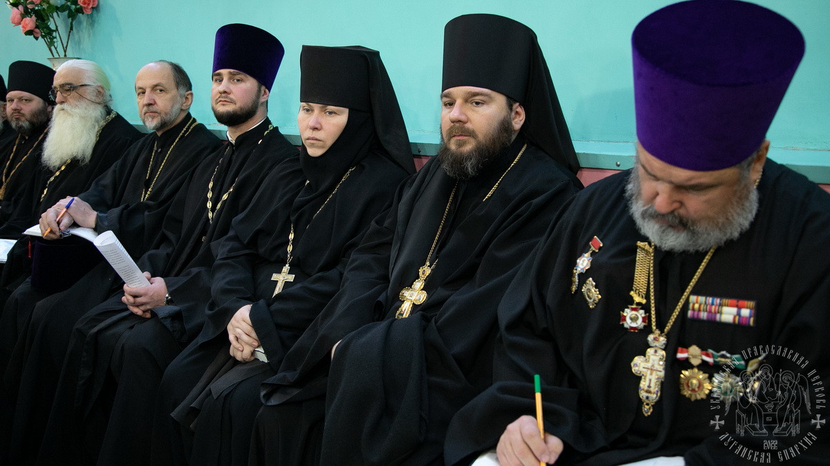 В собрании принимали участие: викарий Луганской епархии – Высокопреосвященнейший Павел, архиепископ Беловодский, секретарь епархии протоиерей Андрей Зозуля, отцы благочинные, игумены и игуменьи монастырей, духовенство и монашествующие Луганской епархии.