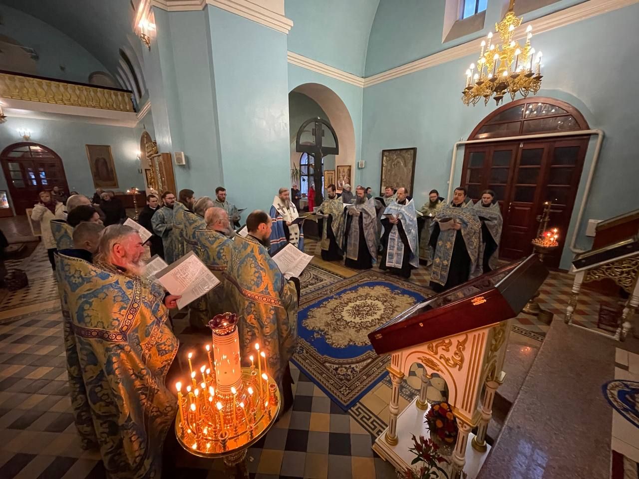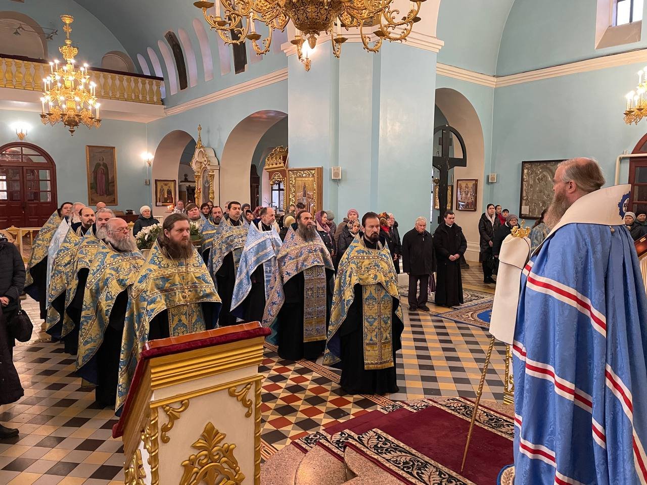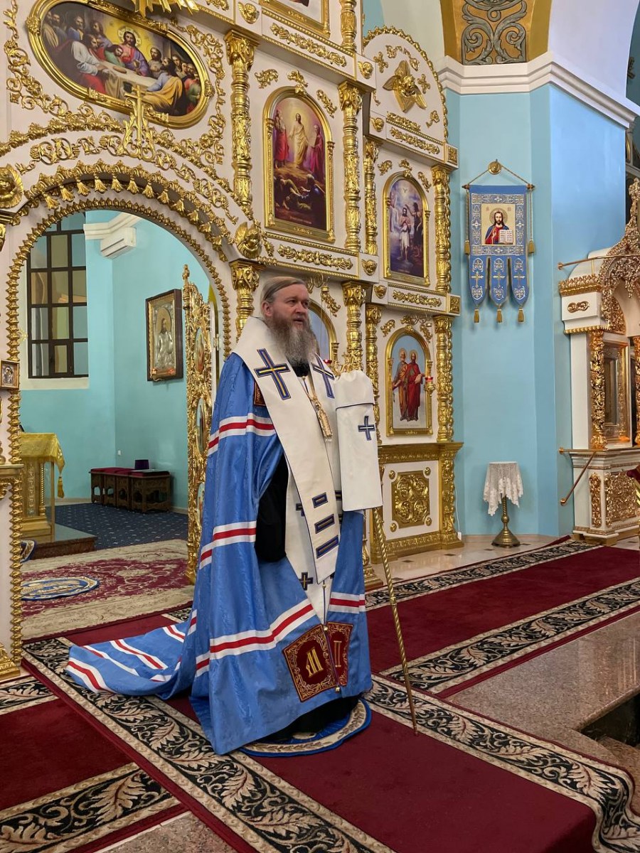 По окончании богослужения, владыка Пантелеимон поблагодарил духовенство и прихожан собора за общую молитву и преподал всем Божие благословение.