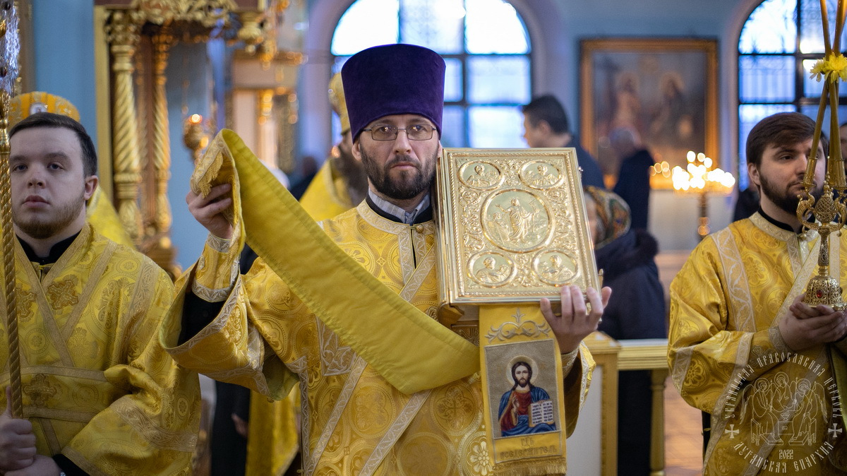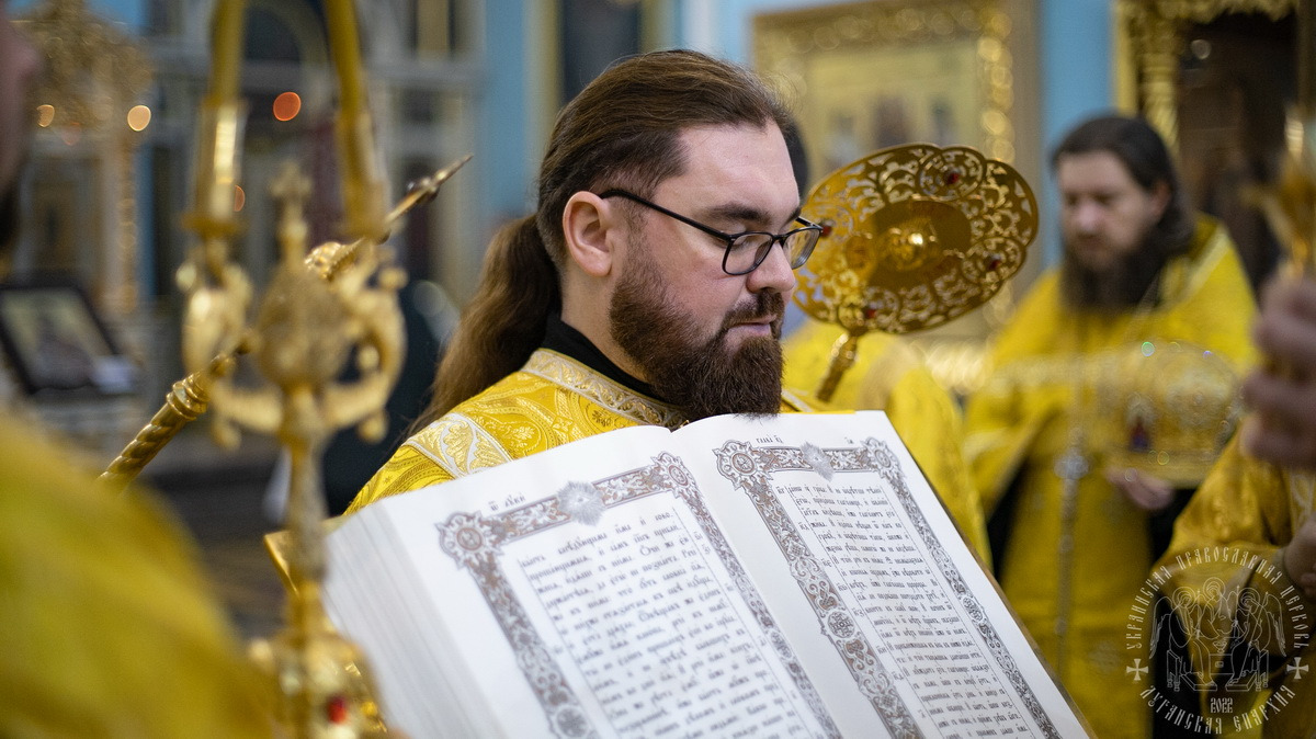 За Литургией Его Высокопреосвященству сослужил секретарь епархии прот. Андрей Зозуля, а также соборное духовенство.