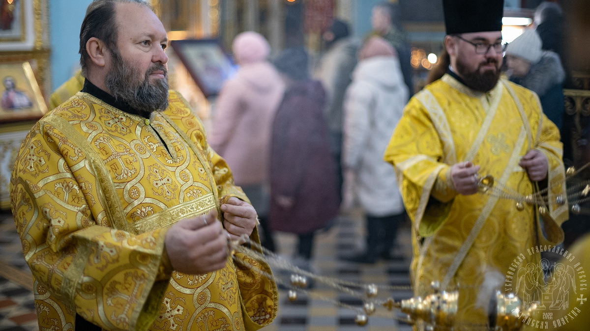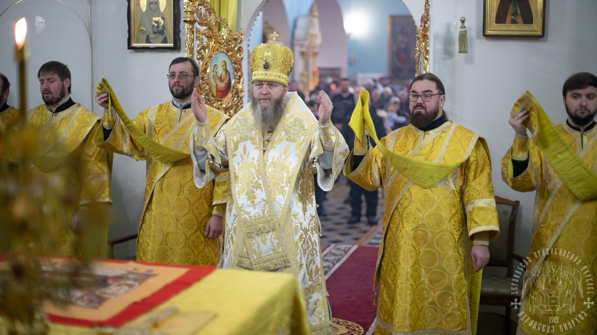 Накануне воскресного дня архипастырь совершил в соборе Всенощное бдение.