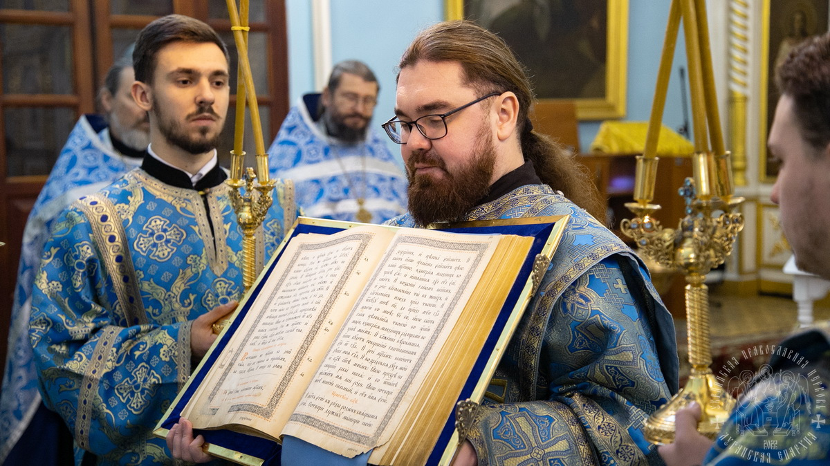 Затем, седмичный священник совершил Божественную литургию в Покровском приделе кафедрального собора.