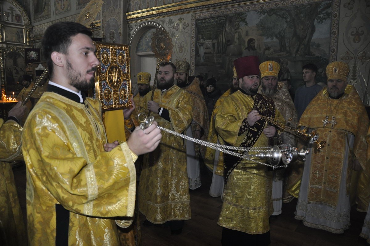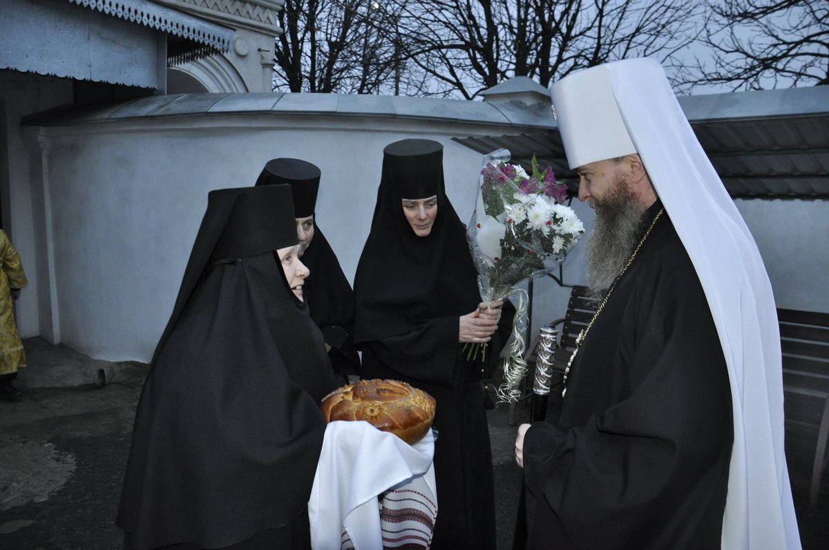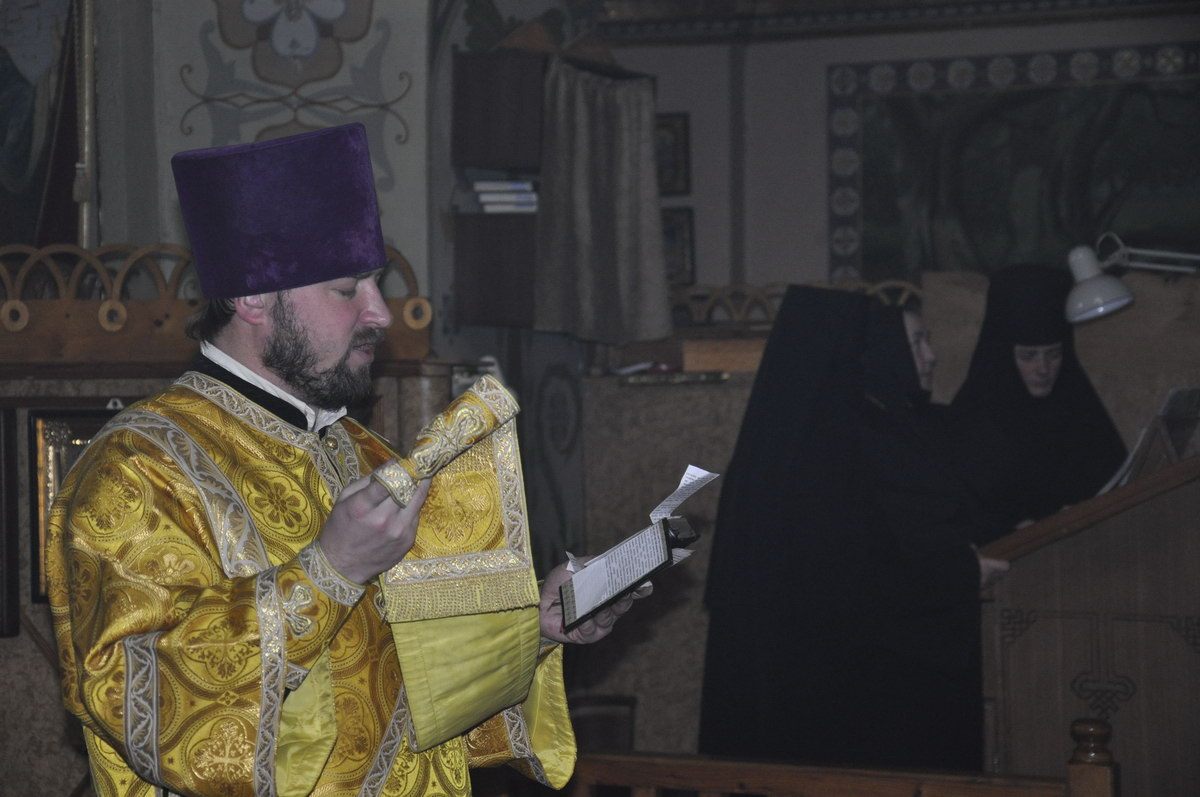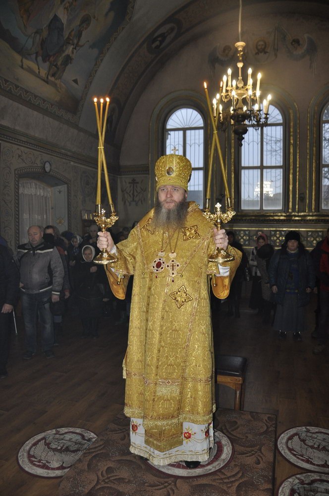 25 декабря, в Неделю 28-ю по Пятидесятнице, святых праотец, день памяти святителя Спиридона, епископа Тримифунтского, в Скорбященском женском монастыре г. Старобельска было совершено богослужение по случаю 12-й годовщины епископской хиротонии Правящего архиерея.