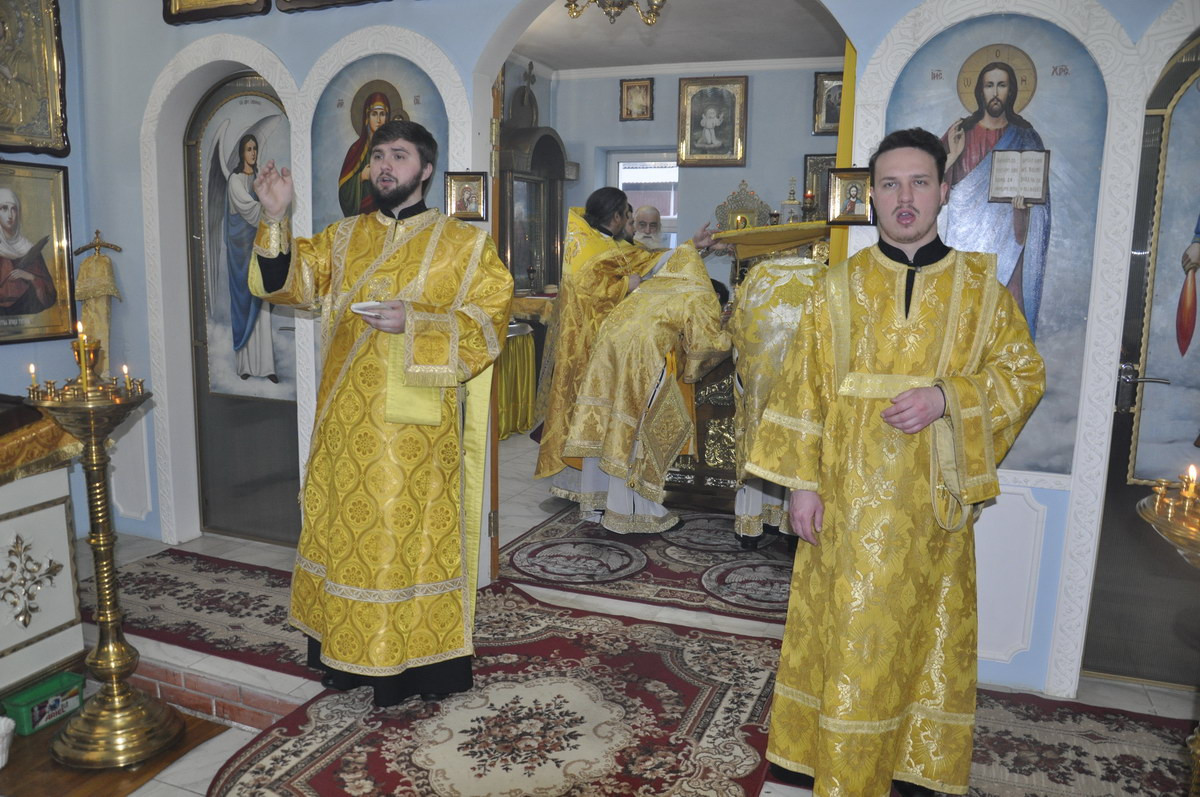 За Литургией архипастырям сослужил секретарь епархии прот. Андрей Зозуля, благочинный Марковского округа и настоятель храма прот. Григорий Акименко, благочинный Меловского округа прот. Игорь Захаркин, благочинный Станично-Луганского округа прот. Алексий Храбров, а также духовенство Марковского благочиния.